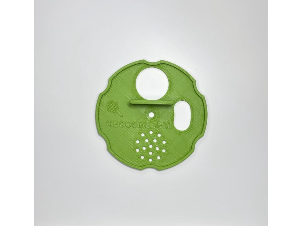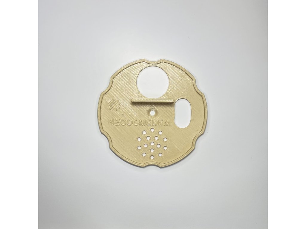 Česnový uzávěr s jedním letákem a šesti praktickými vykrojeními po obvodu pro snadnou manipulaci 🖐️