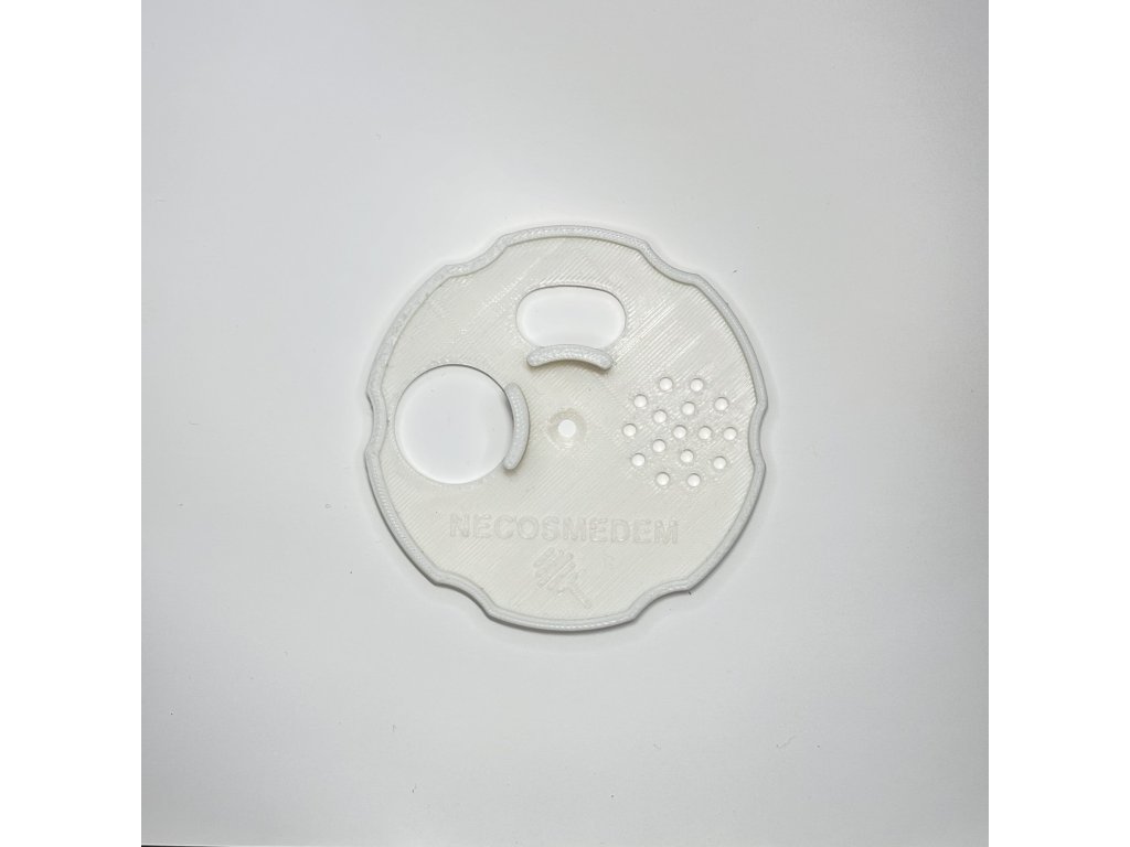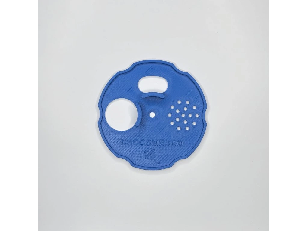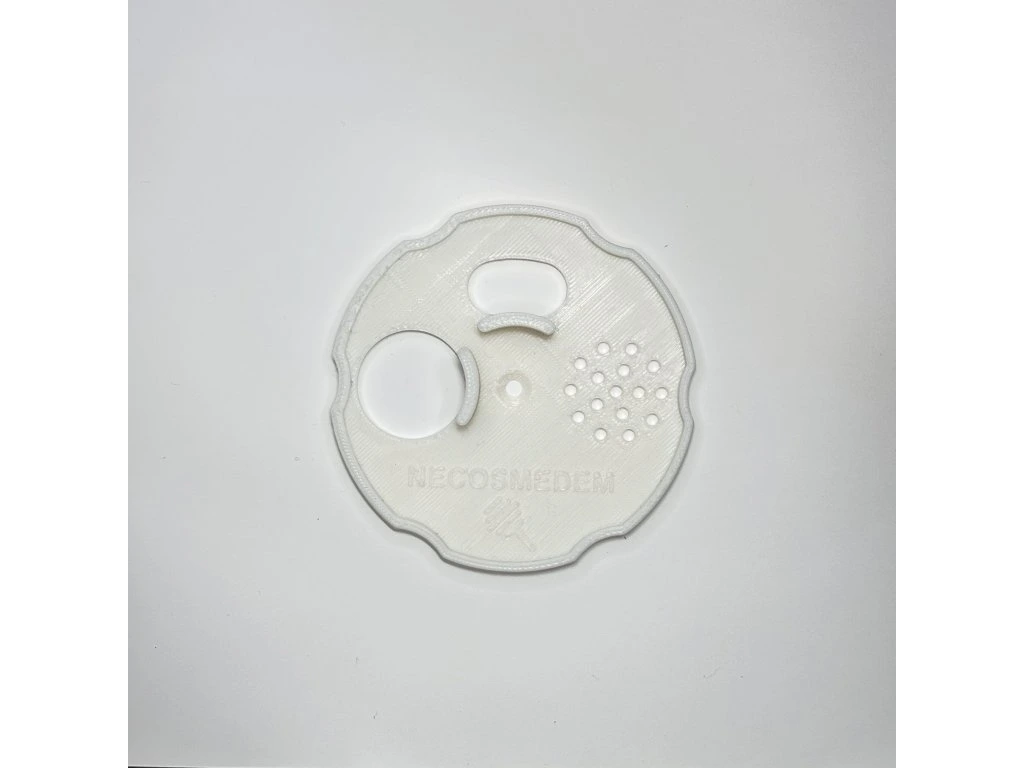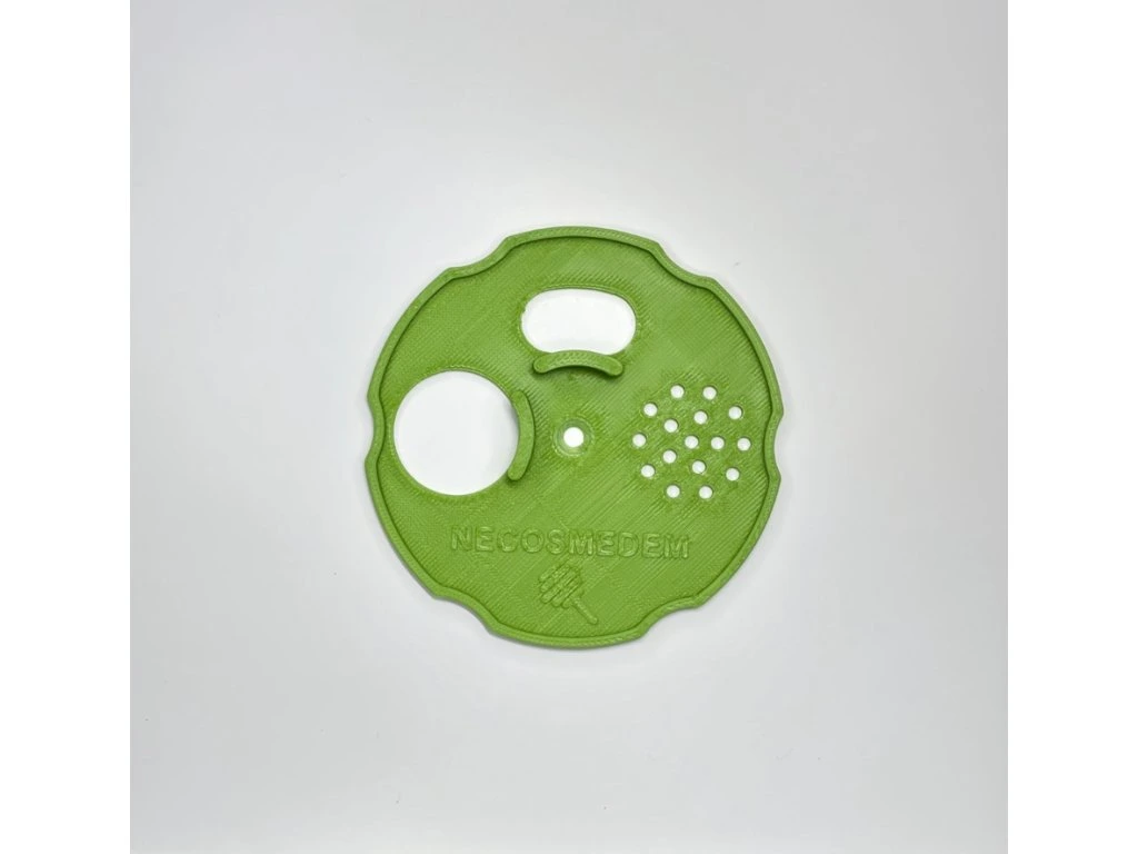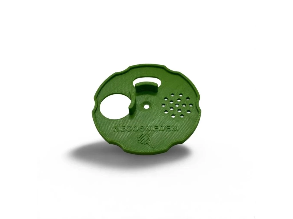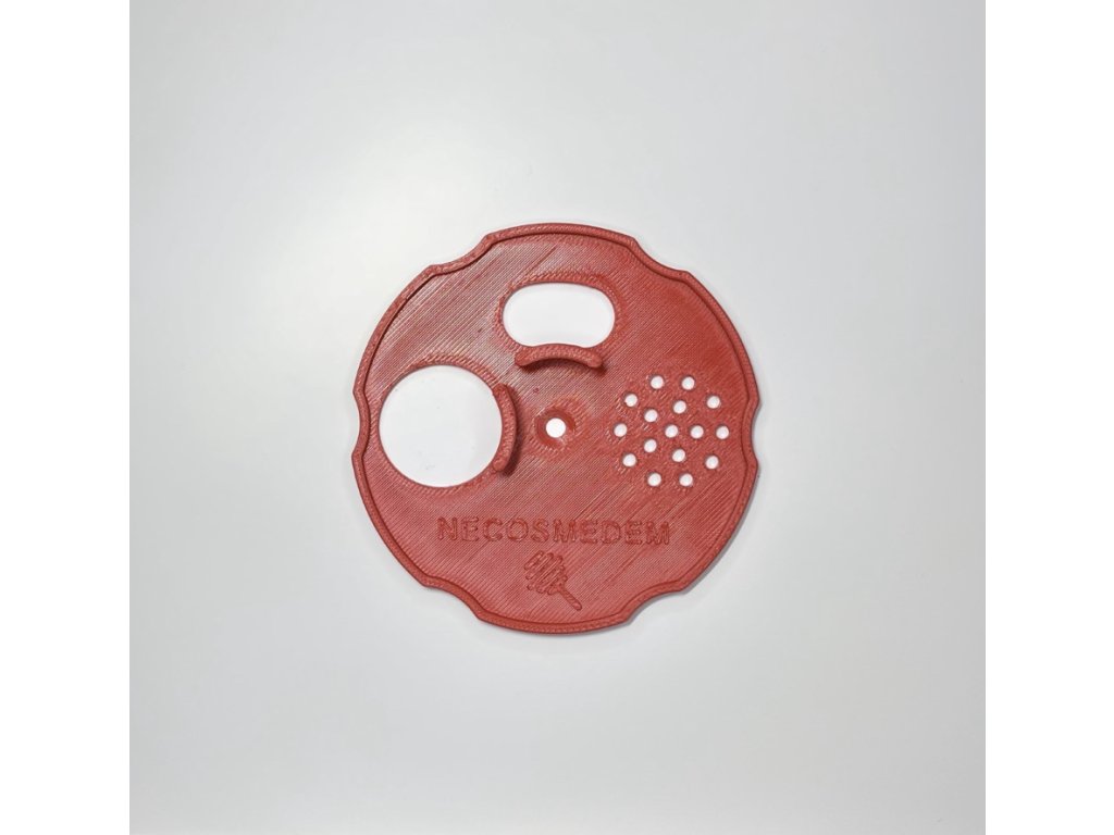 Česnový uzávěr s dvěma letáky a šesti praktickými vykrojeními po obvodu pro snadnou manipulaci 🖐️